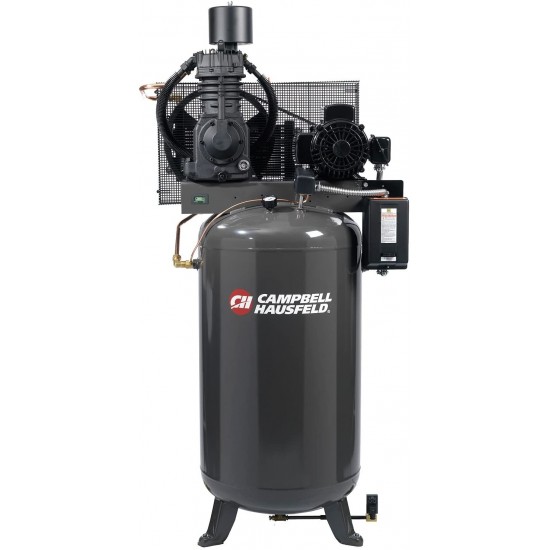 The Campbell Hausfeld™ Shop Air Series compressor is ideal for general compressed air needs, including machine shops, dry cleaners, automotive repair facilities, woodworking shops, or general industrial applications. Features cast iron, 2-stage pump for long life, ASME-certified tank (200 max. PSI) and industrial-duty NEMA motor for reliable service. Mounted and wired motor starter offers fast electrical hookup. Fully enclosed metal belt guard assures safe operation. U.S.A.