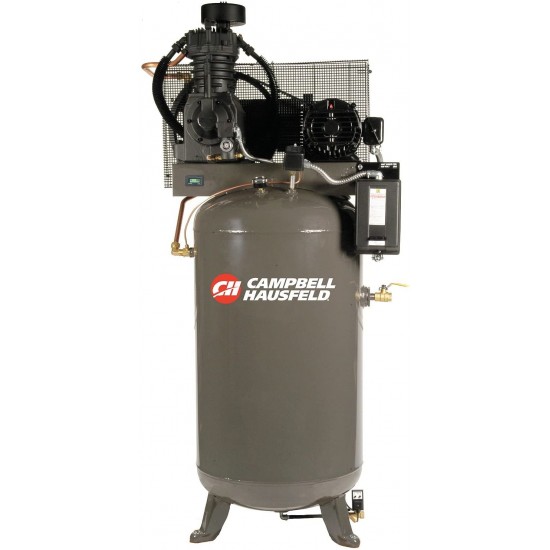 The Campbell Hausfeld™ Shop Air Series compressor is ideal for general compressed air needs, including machine shops, dry cleaners, automotive repair facilities, woodworking shops, or general industrial applications. Features cast iron, 2-stage pump for long life, ASME-certified tank (200 max. PSI) and industrial-duty NEMA motor for reliable service. Mounted and wired motor starter offers fast electrical hookup. Fully enclosed metal belt guard assures safe operation. U.S.A.