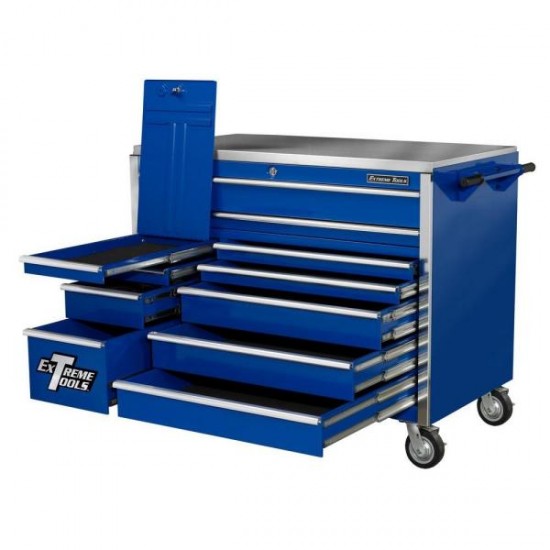 Extreme Tools® RX Series RX722519RC 72 In. 19-Drawer Roller Cabinet is the latest in our RX Series. This professional quality toolbox features 3 extra-long drawers with a support bar to provide strength and prevent warping or twisting. Patented self-latching, Quick Release™ drawer pulls attach across the drawer front - not just at the ends - providing a sturdier, more secure handle and keep drawers closed even when moving. Each drawer uses full-extension ball bearing slides that let you load 100-200 Lbs. per drawer (drawers with double slides.) This huge roller cabinet gives you loads of space at an affordable price with the assurance of Extreme Tools® quality.